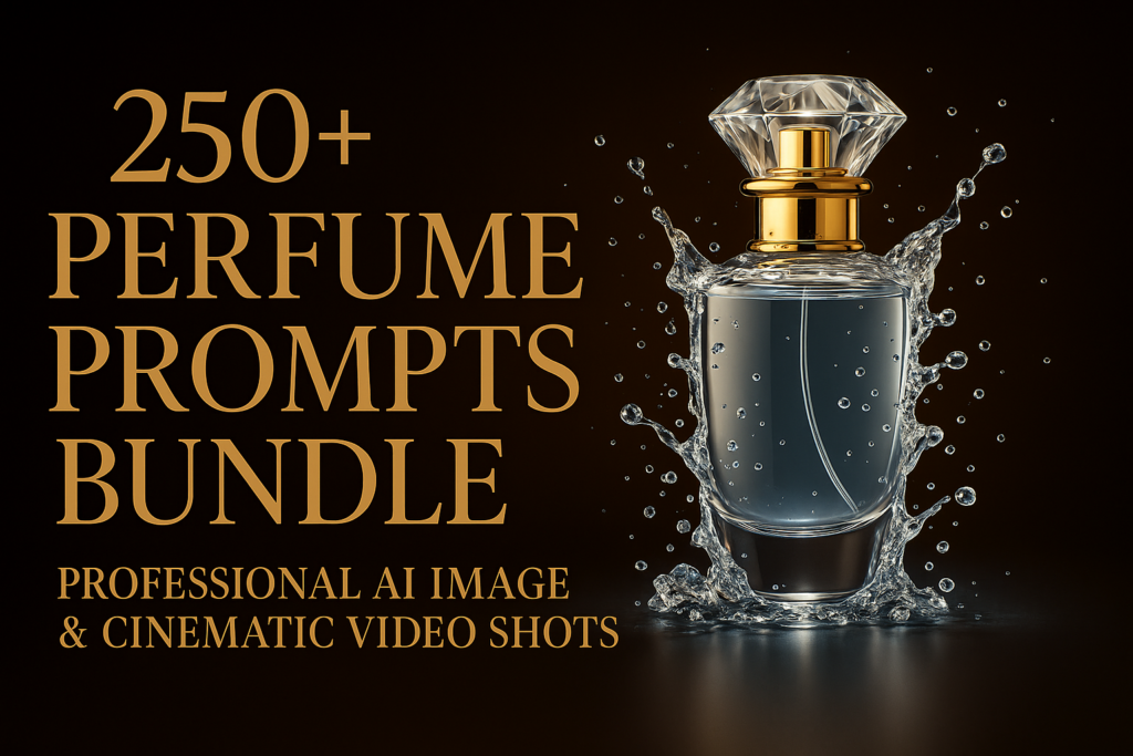 You’ll receive 250+ premium perfume image prompts crafted for luxury ads—studio shots, lifestyle scenes, macro, 3D, cinematic, and brand-inspired styles.